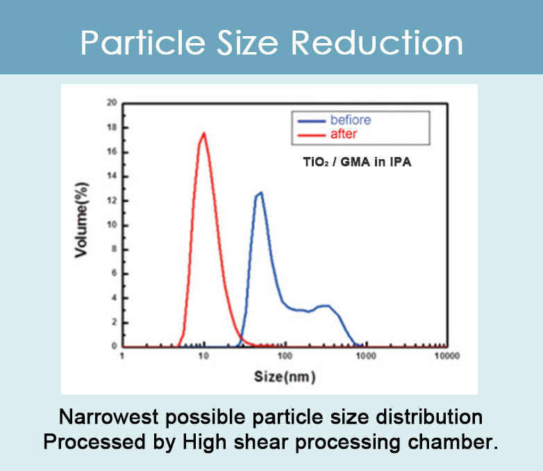 In order to improve the dispersion characteristics of functional ceramic powders into the polymer solution (ceramic slurry). For example the packaging resin of luminescent devices, it can also be found that smaller average particle size and better particle size distribution after treatment ofhigh- shearNanoLyzers, conceive to better physical properties and excellent quality of finished products.
